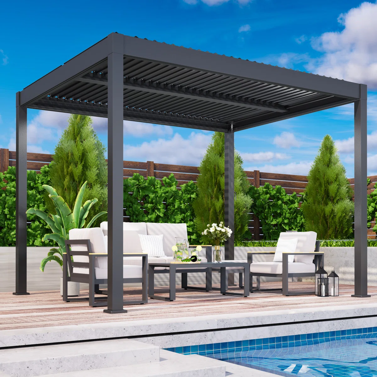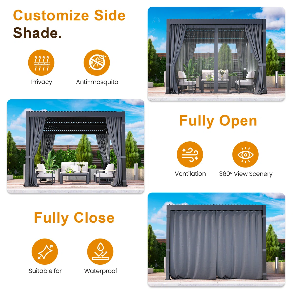 Transform your outdoor space into a perfect retreat for relaxation and entertainment with our pergola!2 hand cranks effortlessly adjust louvers from 0° to 90° for optimal sunlight control based on personal preferences and the hidden gutter system easily resolves roof water accumulation concerns during rainy days. The aluminum and metal structure ensures durability and sturdiness, offering users a hassle-free experience. With full coverage of a variouty of sizes, this pergola liberates your outdoor activities from weather constraints. Whether for family gatherings, outdoor relaxation, or shelter from wind and rain, it fulfills all your needs. A versatile addition to gardens, decks, yards, and patios, it even doubles as a carport, ensuring a seamless blend of functionality and style.