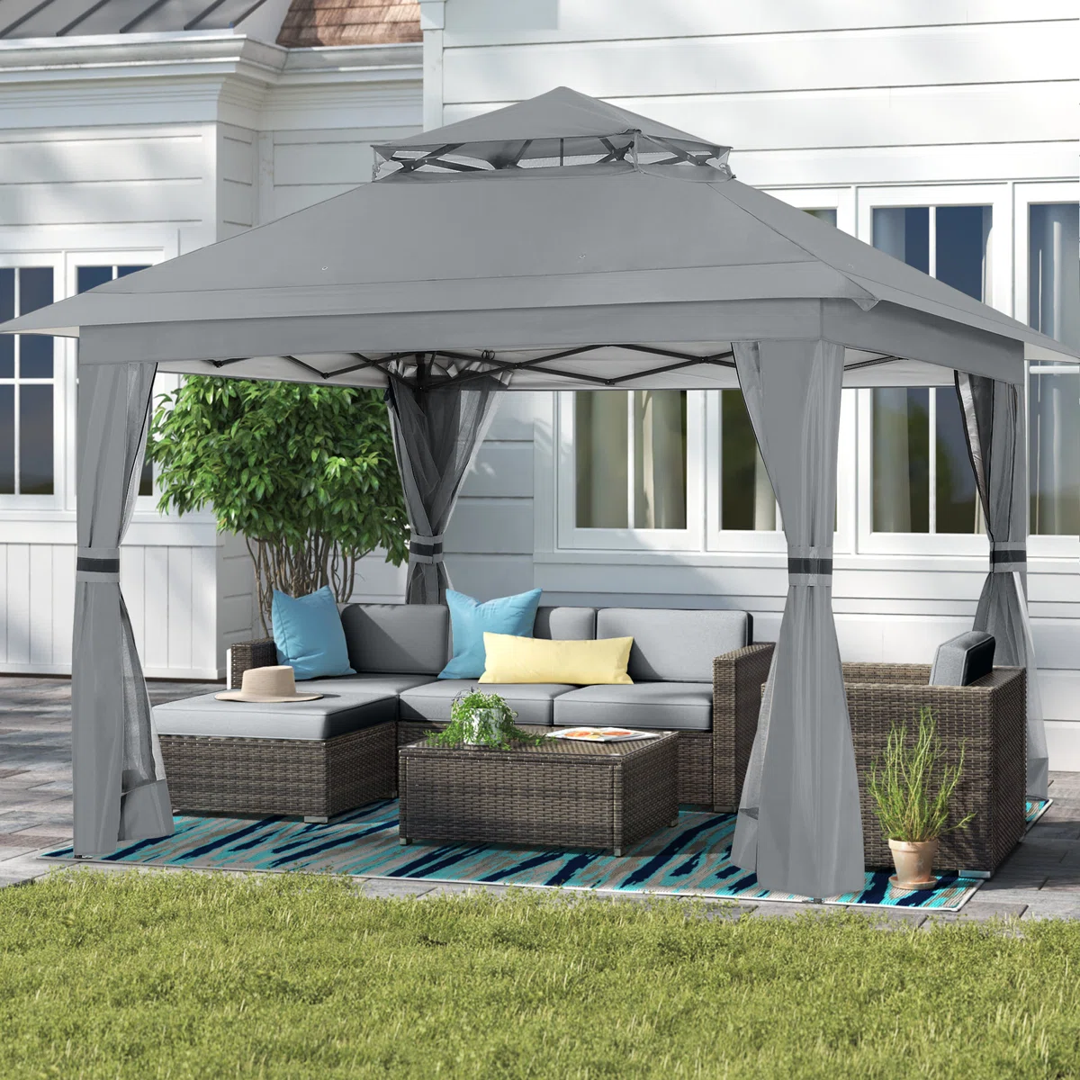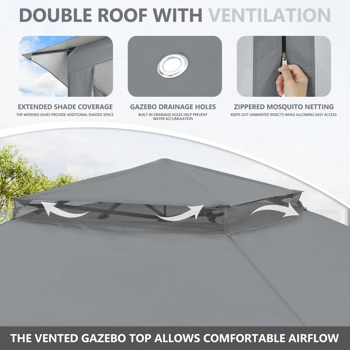 This Pop-Up Patio Gazebo provides 169 sq. ft. of waterproof, UV-resistant shade with a ventilated double-layer canopy and zippered mesh walls for added privacy. Quick to set up and built for versatility, it’s the perfect shelter for outdoor gatherings, parties, and celebrations.